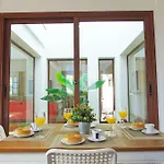 يُمكن للضيوف الاسترخاء على الشرفة الّتي تتميّز بإطلالة على الحديقة.